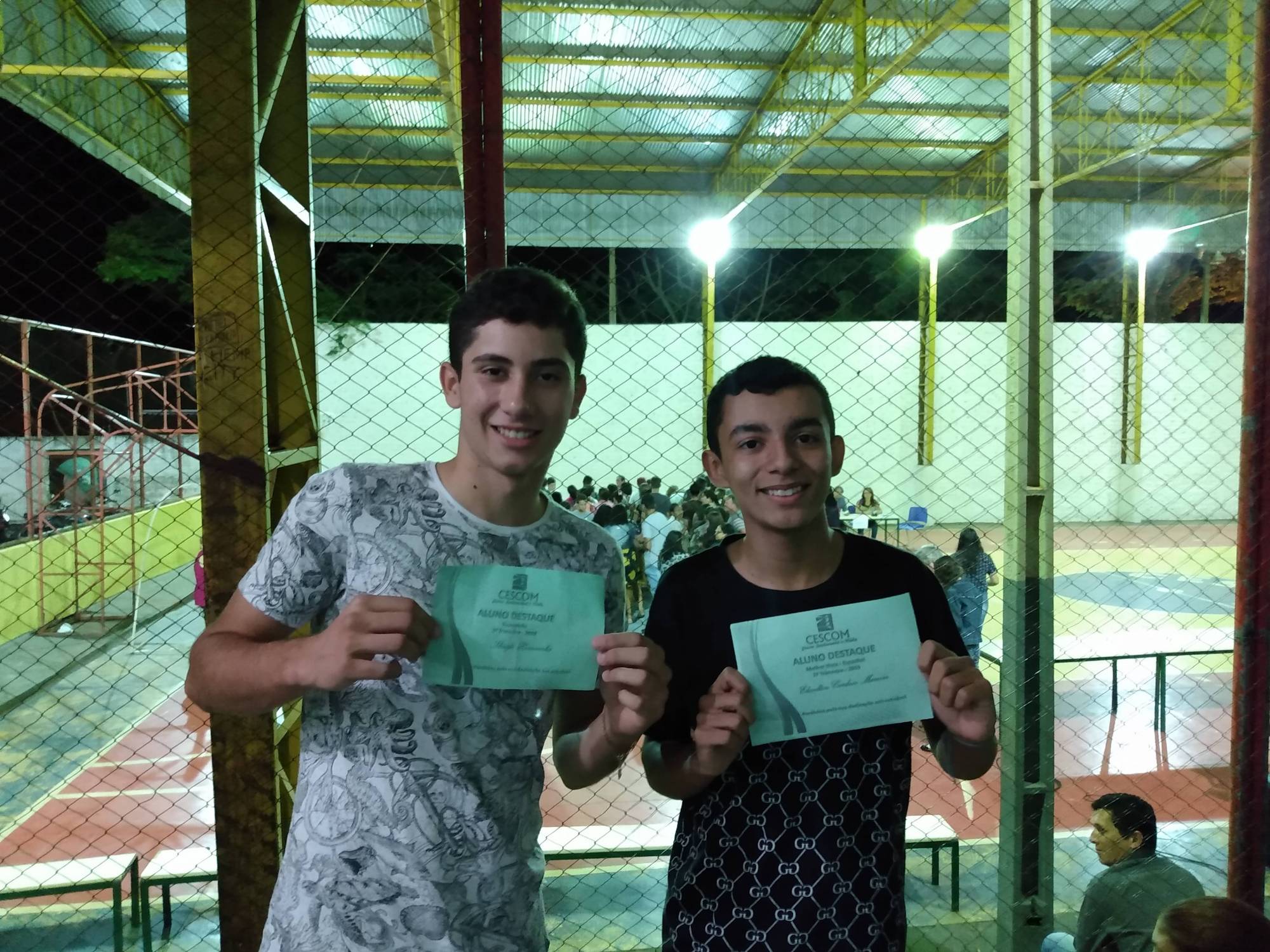 Os Interactianos Thiago Hernandes e Elivelton Cardoso Mareira, do Interact Club de Santa Cruz de Monte Castelo (Distrito 4630), receberam, nessa terça-feira (22), os Certificados de Aluno Destaque conferidos pelo Colégio Estadual Soldado Constantino Marochi.